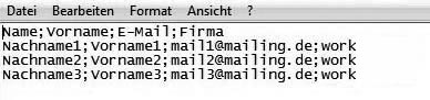 Maybe you have already collected email addresses to which you want to send a newsletter. No matter in which database these information are stored – you only need to save them in a CSV file (for example with Excel) and import them newsletterprofi.services. You can pack your CSV file as a zip to accelerate the uploading of large files. That's how it works:In the first line of the table, there should be field names – first name, surname, email address etc. An example: |